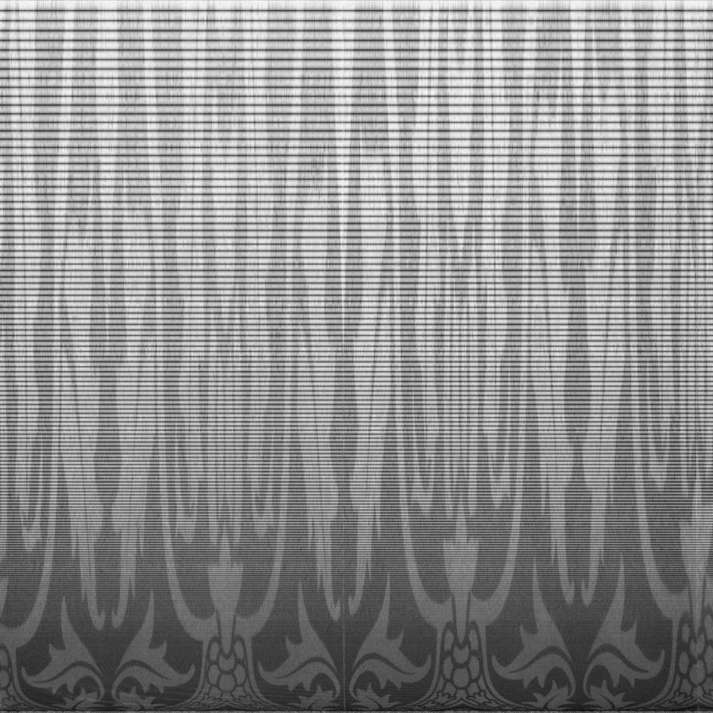 The faded condition of the vintage wallpaper, its signs of wear and decay, are reflected in the grainy, eroded nature of the audio. The work is at once an exploration of a frozen moment and of the relentless processes of time, loss and disappearance.