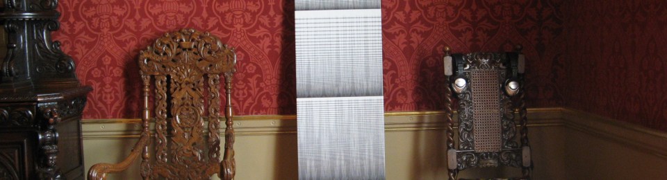 The work is inspired by the venue’s Victorian wallpaper. Computer software was used to convert a photograph of the wallpaper into sound, which was digitally edited and processed to produce a haunting atmospheric soundscape. The sound was also transferred back into images printed onto canvas, ghostly echoes of their origins.