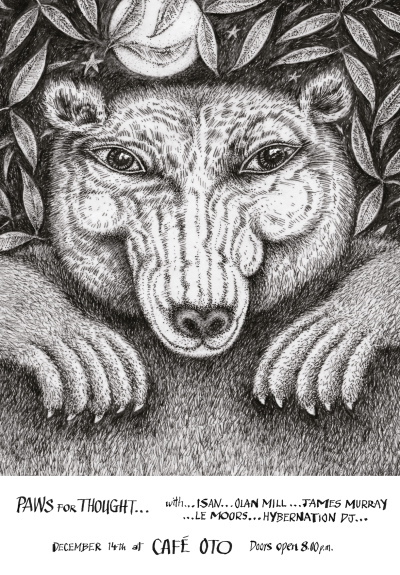 Le Moors, my collaborative project with Jeff Stonehouse (Listening Mirror), will be playing our first gig at Hibernate presents Paws for Thought, December 14th 2013 8pm at Cafe Oto, London, alongside ISAN, Olan Mill, James Murray and Hybernation DJ.