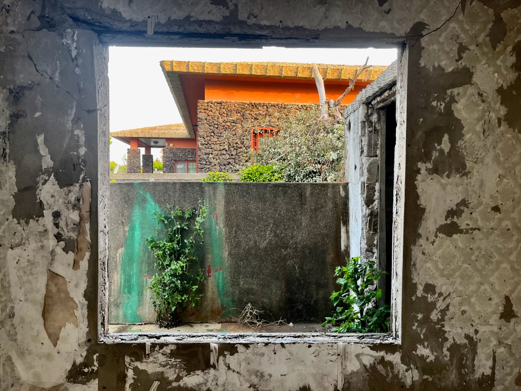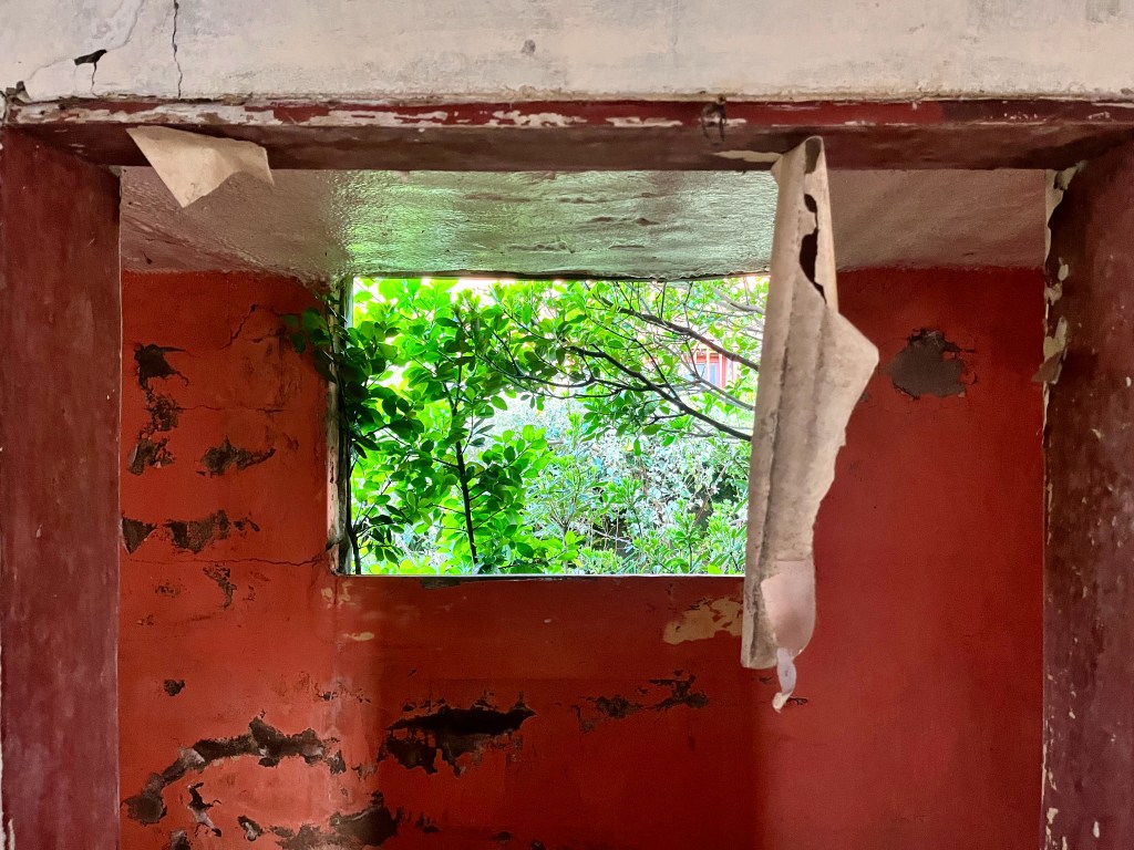 It is inspired by a derelict house in the centre of the island and explores the traces of previous use and notions of absence and the liminal space between the manmade and nature as the human elements decay and wild plants and animals take over.